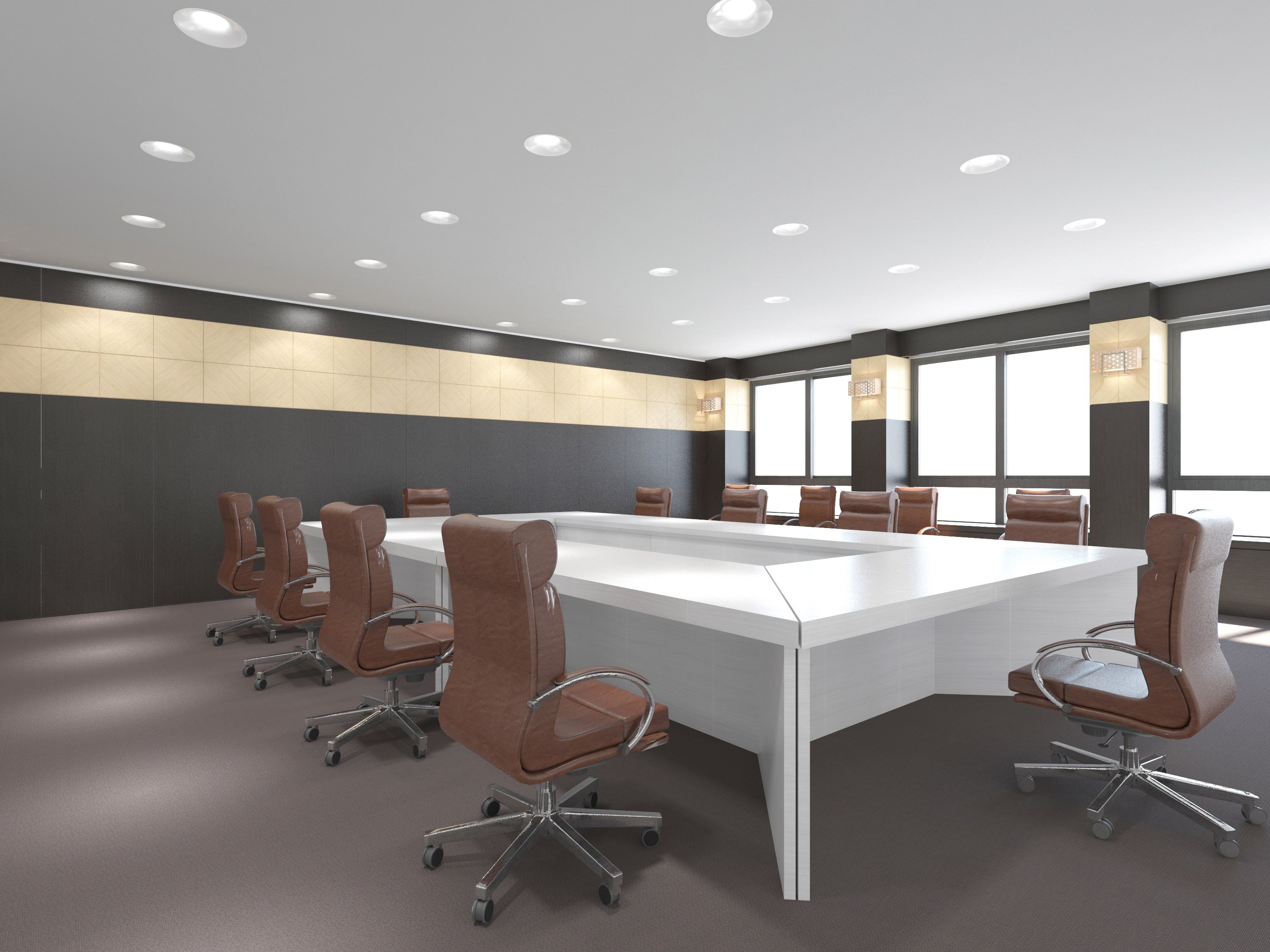 기둥과 무빙 월 그리고 가구에 흑단과 메이플 소재를 활용하여 고급스러우면서도 한국 전통의 분위기를 연출하고 이와 어울리는 브라운 톤의 우븐과 백색 무늬목 가구, 구로 철판 액자가 어우러져  사용해 회의실의 품격을 살렸다. 기둥에는 한식 느낌의 제작 조명을 활용해 한층 더 고급스러운 느낌을 강조한다. 기능적으로는 무빙월을 설치하여 한 개의 회의실이 두 개의 회의공간으로 나뉠 수 있고 사다리꼴의 책상을 배치하여 자유로운 회의 테이블 배치가 가능하도록 하였다.